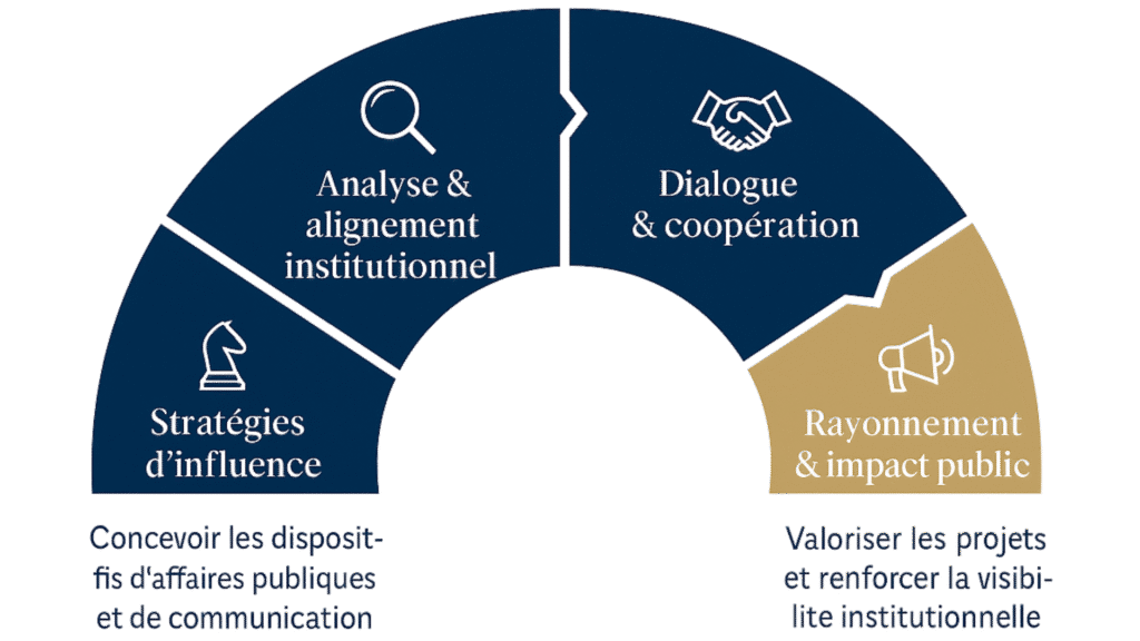 A structured method to connect strategic thinking, institutional dialogue and influence communication.